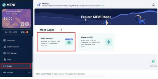除了钱包基础功能以外,MEW 目前更提供了ETH 2.0 质押、ENS 以太域名服务管理以及之后也预计推出更多DeFi 相关服务(支持Aave、MakerDAO等协议)。