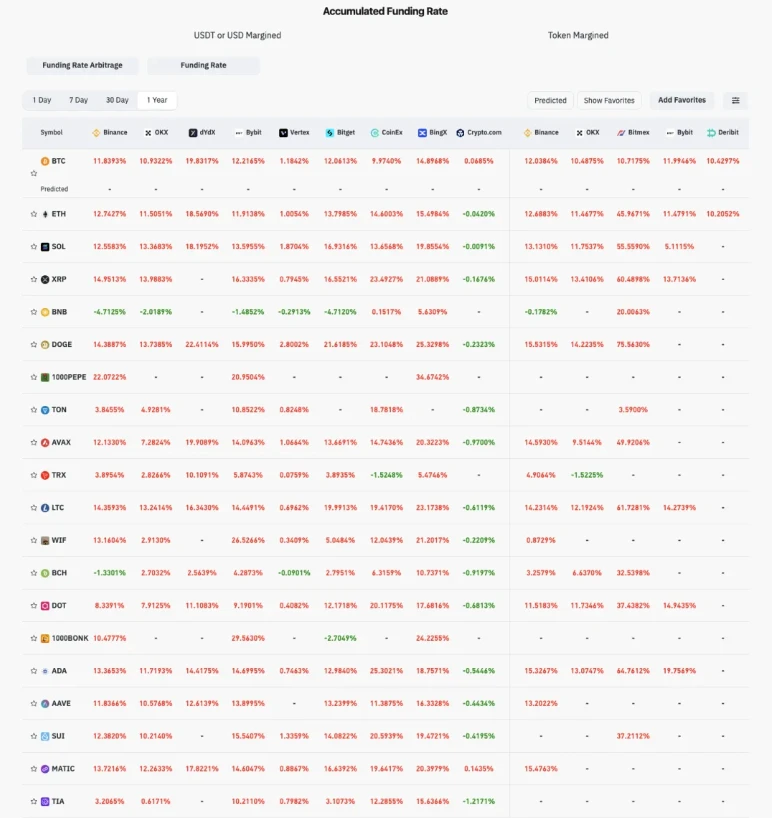 图 4 :大多数**的 1 年期资金费率为正,来源:Coinglass