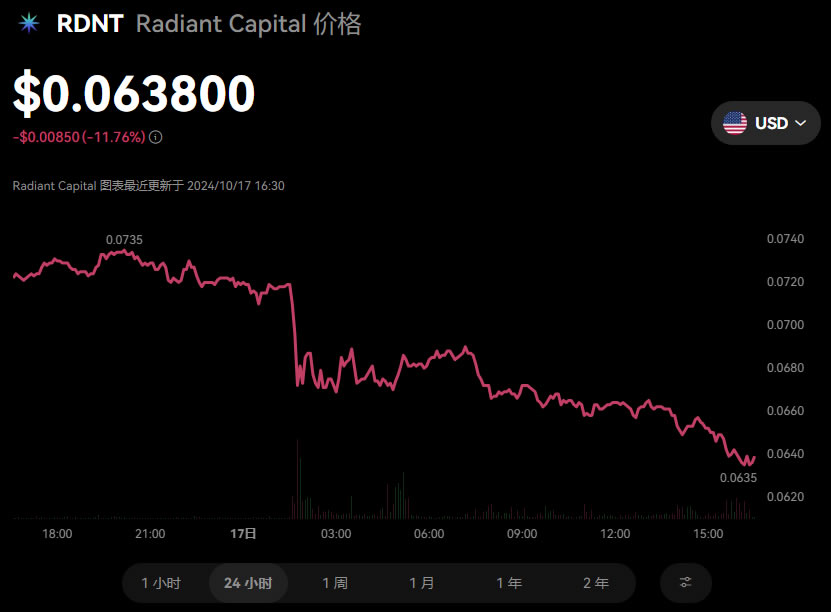 RDNT币当前价格为 $0.063800。RDNT币的价格在过去 24 小时内下跌了 -11.76%。目前,RDNT币市值排名为第 201 名,实时市值为 $7,341.66万,流通供应量为 1,144,808,390 RDNT,**供应量为 1,500,000,000 RDNT。我们会实时更新 Radiant Capital/USD 的价格。
