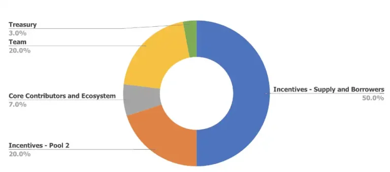 - 50% 作为存款人和借款人的激励,在两年内释放;