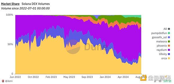 除了协议自身革新升级外,DeFi赛道爆发也需要良好的宏观金融环境,给予以太坊良好表现的空间。而更加重要的是,DeFi协议要加强与MEME等资产发行的结合,无论是Solana还是近期崛起的Tron,链**动性都因MEME用户爆发而变得充裕,下图就展示了Raydium受益于PumpFun巩固强化了市场份额。