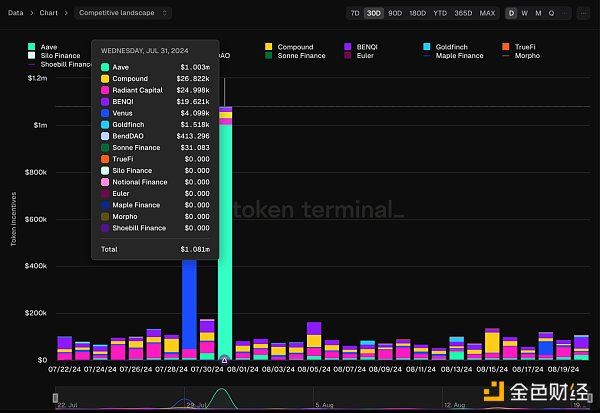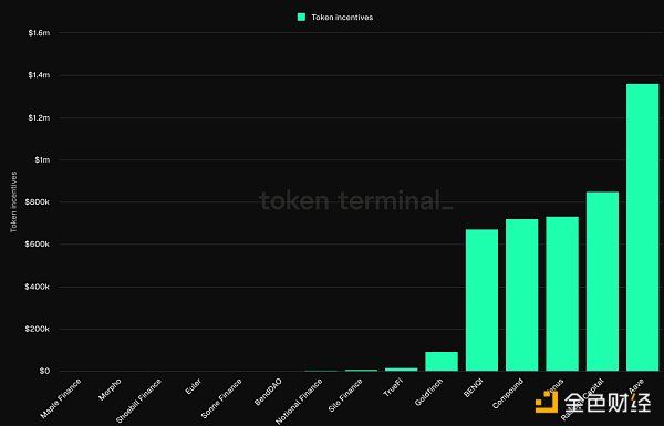 此外根据Token Terminal的数据,Aave协议也为投资者提供了大量的激励,巩固其作为**大借贷协议的地位。