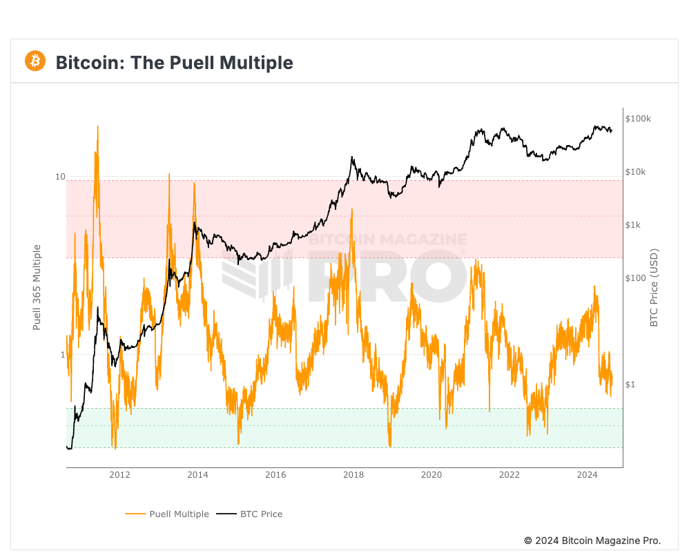 Puell 乘数:本轮高点仅为 2.4
