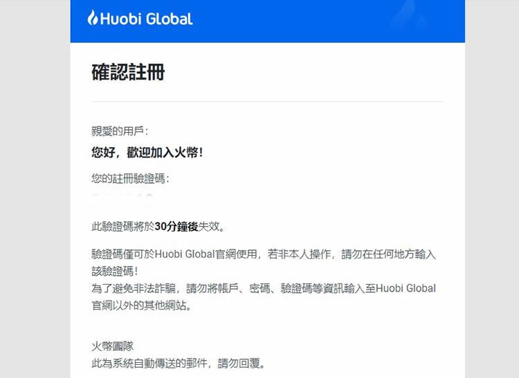 将收到的“手机验证码”,输入验证码栏,点击“确认”,即可完成火币注册;