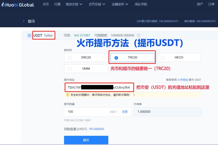 <**all>图:谷歌验证器IOS系统下载页面 至此**火币身份认证完成,您已经拥有了**多米尼克数字公民身份。 在认证过程中遇到**问题,欢迎联系火币客服咨询。 注册完成后,建议在火币官网(www.huobi.com)下载需要的手机APP或者PC客户端(第三方提供的APP未必安全)。 火币官网提供安卓和苹果交易平台的手机APP下载,还有火币OTC交易、火币矿池和火币钱包等APP下载,只要简单扫码就可以完成下载! 火币充值**步: 1)登录火币网-选择“法币交易”-“普通交易”,然后选择你想要的币种(这里以购买BTC为例),考虑价格、支付方式选择广告,点击“购买BTC”。 火币充值第二步: 2)输入想购买的金额/数量,点击“下单”。 火币充值第三步: 3)在订单详情页,确认付款金额(总价)和付款方式。在时限内,转账给对方,转账后,请务必点击“已支付”。 (※请注意,您需要按卖家的支付方式,通过网银/手机银行、支付宝、微信直接转账给卖家。如果您已转账给卖家,千万不要点击“取消交易”,除非您的付款账户已经收到卖家退款。) 火币充值第四步: 5)在“确认支付”弹窗,点击“确定”。 (※如果您没有真的付款,请不要点击“确定”,这是交易规则不允许的。查看交易规则,请点击这里。) 然后,等待卖方放币。 火币充值第五步: 6)卖方放币后,交易成功。 您可以点击“立即划转”,将数字货币划转至币币交易账户;也可以在右上角“资产”中,看到刚购买的数字货币。 火币充值附注一: 如果点击“已支付”2分钟后,您还没有收到币,可以点击虚拟电话图标,联系卖家。 火币充值附注二: 如果点击“已支付”5分钟后,您还没有收到币,可以点击“申诉”,平台客服会在聊天框中介入处理。 火币法币交易区目前只提供BTC/ETH/USDT的买卖,如您需要交易其他数字货币,请将您购买的BTC/USDT/ETH划转到币币交易区,进行购买。 币圈老鸟们一般都有火币和币安2个以上交易所账号,既可以分散风险,也可以利用更多优惠,哪家合适就用哪家! 这样就涉及到从一个数字货币交易所提币到另一个交易所,以下是从火币提币(USDT)到币安的流程(建议链上提币充币先换成USDT,不但到账快,手续费还便宜)。 火币提币**步:确认充值地址和转账链 登录币安官网-选择“钱包”-“现货账户”,然后选择你想要充值的币种(这里以充值基轴币种稳定币USDT为例),选择“充值”。 打开币安USDT的充值地址后,要选一个转账的链,大部分数字货币交易所都支持ERC20、OMNI、TRC20三条链,每个链的所对应的地址都不一样。这里以TRC20为例(手续费**1USDT)。 火币提币第二步:复制币安的USDT充值地址到火币 接下来,打开火币交易所账户,在“币币账户”中找到USDT,选“提币”,进入火币USDT的提币页面。 充币和提币的链要统一,都选TRC20,然后把币安USDT的充值地址复制一下,粘贴到火币的提币地址栏里。输入提币数量开始提币,确认一下内容是否有误。 火币提币第三步:安全认证,输入验证码完成提币 接下来,火币会要求你输入各种验证码,以保证是你本人提币。如果你设置了邮箱、手机和谷歌等两步验证,都需要将收到的验证码输入,即可完成提币。 火币提币第四步:完成提币申请 当提币申请完成后,火币会有个提示。也会问一下提币的原因,实际回答就可以。一般5分钟内,火币和币安都会来短信通知,从火币提币充值到币安成功。在币安钱包内可以确认USDT到账! 火币交易所和币安交易所都是全球排名前十的头部虚拟货币交易所,建议两个都注册账号以备不时之需!