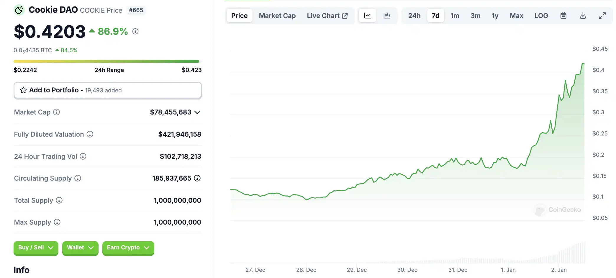 Will:那么 Cookie DAO 的市值是多少呢?只有 3200 万美元。(播客录制时的数据,目前为 4200 万美元)