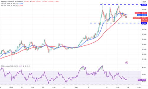 买家发现很难推动 ALGO $0.19超过0.22美元的头顶阻力,但一个积极的迹象是他们没有放弃太多的土地。这表明公牛预期另一条腿会更高。