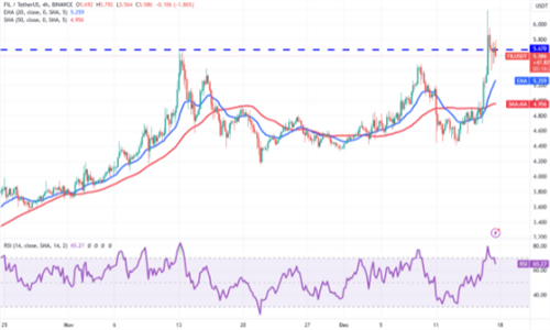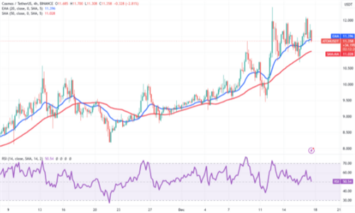 看涨者正试图推动价格高于12.50美元的直接阻力,但看涨者并没有放松。然而,向上倾斜的移动平均值和正区域的RSI表明阻力**的路径是上升。