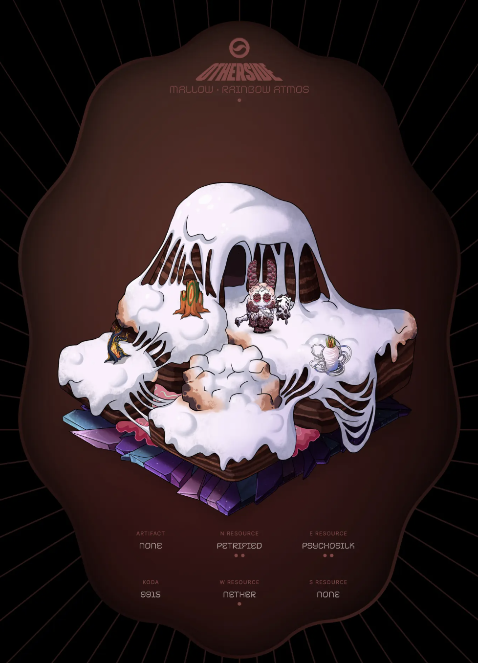 这张 NFT 的售价为 182.5 ETH,2 月 10 日价值 276,500 美元,当时 ETH 价值约为 1,515 美元。它是**一个具有“Molten Melt”和“Mallowrium”特征的资源,以及一种稀有的“psychosilk”东部资源,而其他 Otherdeed NFT 中只有 2.8% 拥有这种资源。
