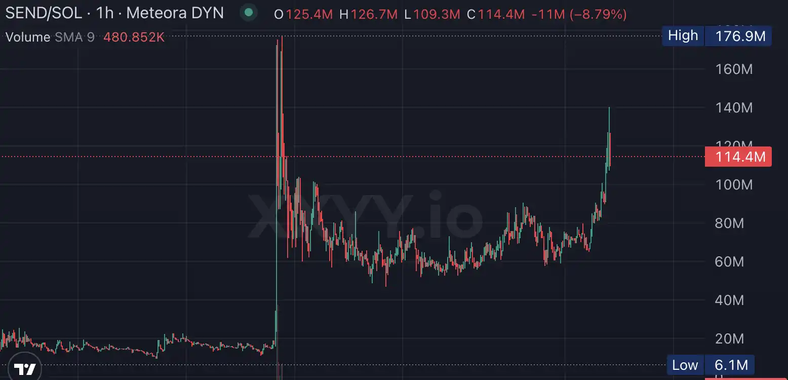 如果说 Solana 公布由 SendAI 举办黑客松时,其**市值**至 1.7 亿美元是市场对其预期情绪的回光返照的话,今日的 Send 重回 1.3 亿市值就是市场对其 AI 体系展现潜力的真正认可。