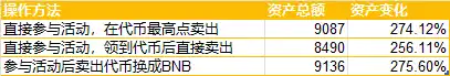 这个收益结果比单纯参与活动并卖在**点的收益更高,而**的好处在于,这样的操作方法更贴近实操,毕竟没有人能每次都卖在**点上。相比正常参与活动,只是将奖励**直接卖出,而不换成 BNB,**的实际资产总额约为 8490 美元,相比之下,复利的方式还是更有优势。