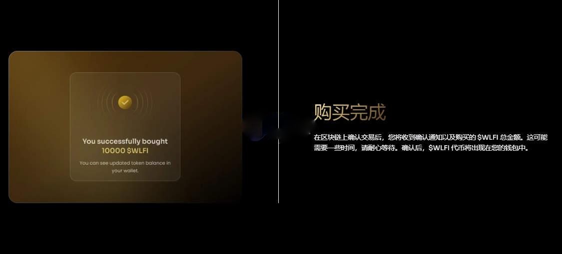 7、在区块链上确认交易后,您将收到确认通知以及购买的 $WLFI 总金额。