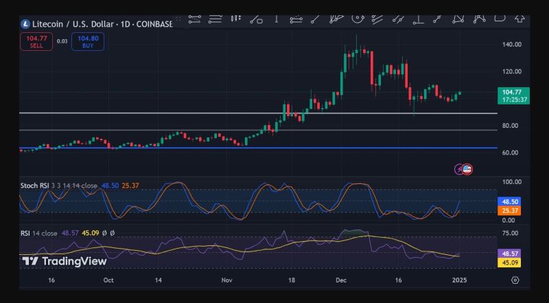 上周同一时间,莱特币的价格为 99.47 美元。过去一周,莱特币价格下跌了 -3.76%,目前为 103.13 美元。事实上,在过去 24 小时内,莱特币价格上涨了 0.73%。加密货币市场略有看涨情绪。然而,长期情绪仍然看涨,莱特币价格可能在 2025 年达到 181.83 美元。