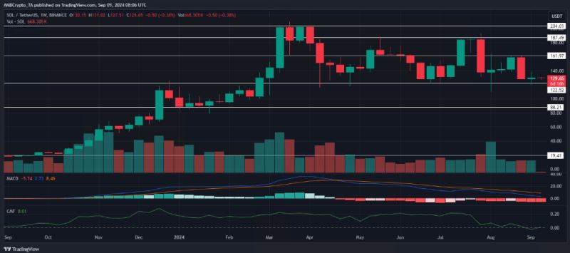 到 8 月初,价格回到了六个月支撑位 122 美元。尽管巴西批准 SOL 交易所交易基金(ETF) 引起了广泛关注,但直到 8 月下半月,价格才反弹至 161 美元。