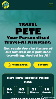 | TravelPETE | PETE | $0.0005 | $1.3万 | 重新定义旅游的热门AI驱动迷因币 |