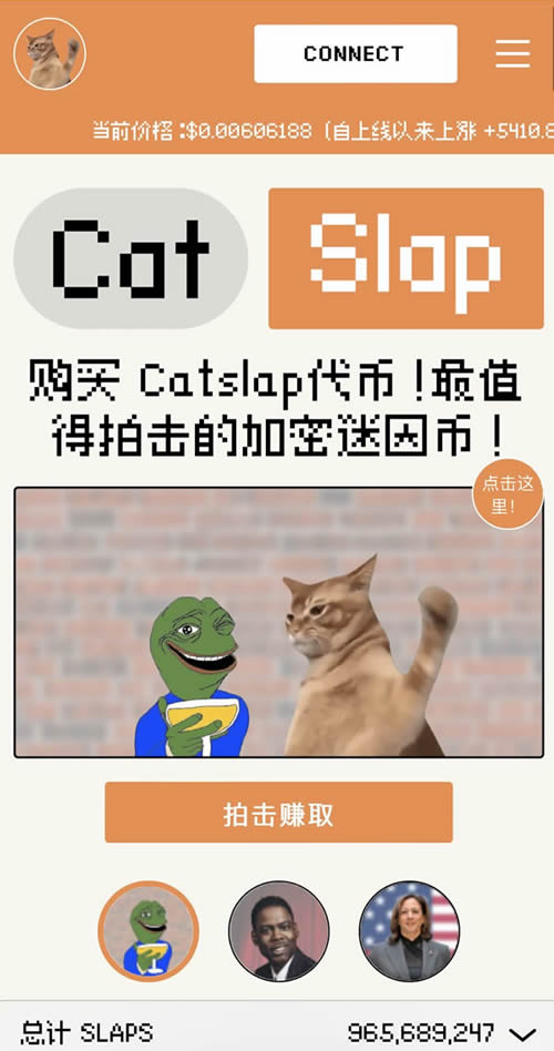 Cat Slap 上市去**化交易所(DEX)不足 3 小时,Cat Slap 实现 1400% 的惊人涨幅,成为市场上的热门话题。这款以猫咪文化为灵感的创新**,凭借其独特的定位和市场表现,迅速赢得投资者的青睐。