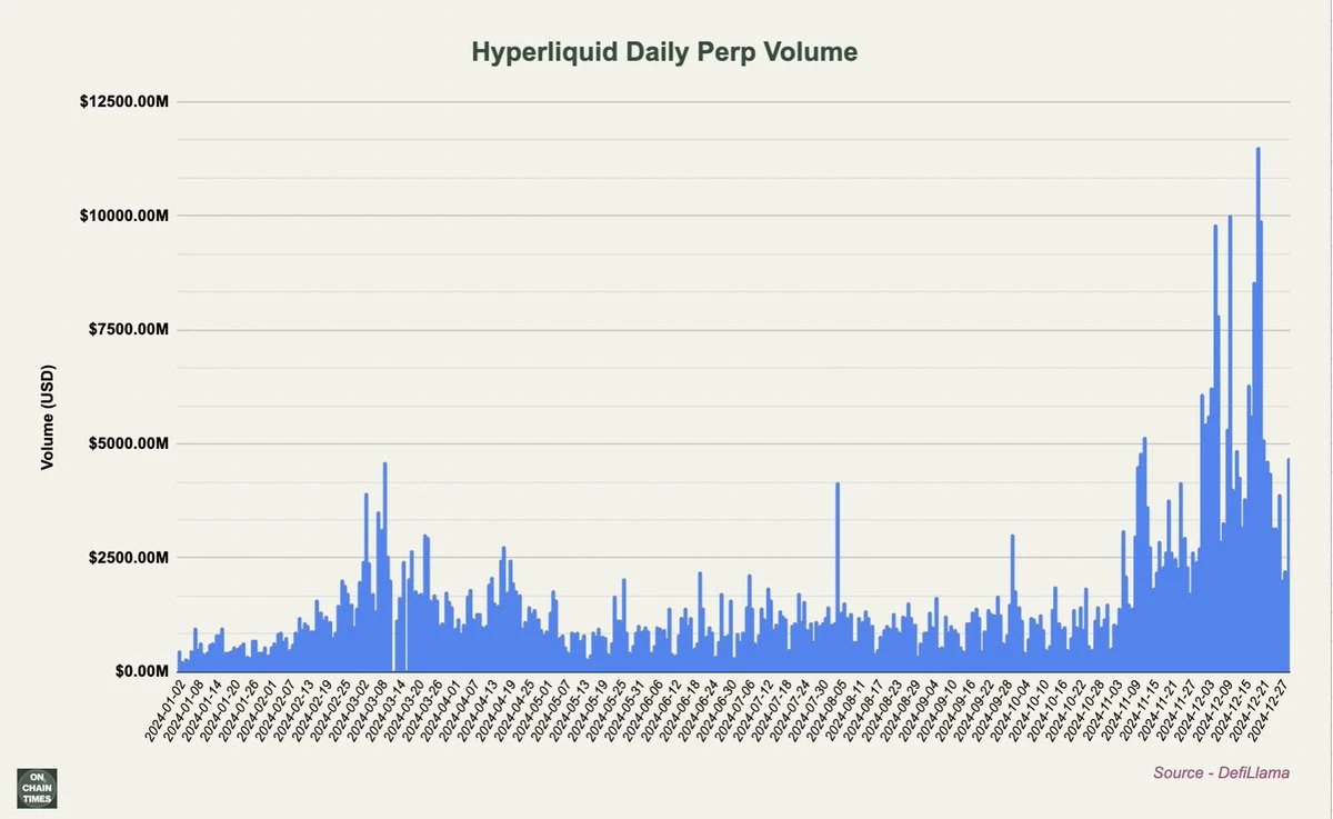 进入 2025 年,HYPE 的上涨预期是对 Hyperliquid 交易量继续增长以及现货拍卖需求继续增长的押注,因为这将导致 Hyperliquid 的收入增加,进而放大 HYPE 的回购力度。