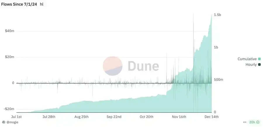 从 **E 开始,我们已经部分看到了这种流入,但正如 fiskantes 所说,仍有大量资金在场外等待 HyperEVM 的发布和向去**化验证者过渡后,才会分配到 HYPE。