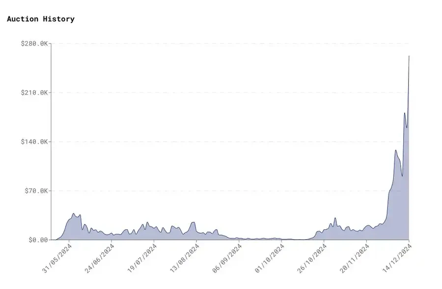 拍卖价格翻倍,之后保持平稳(每轮拍卖 100 万美元)