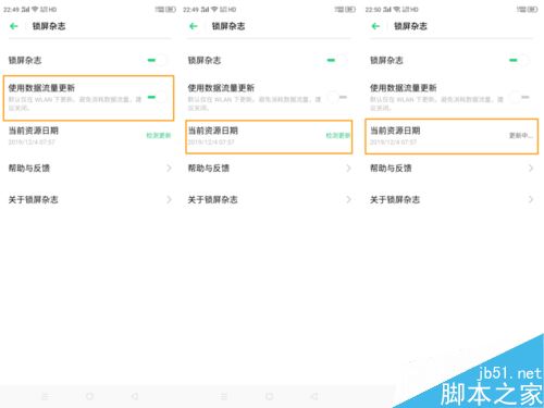 3、如果有需要,您可以通过手机【设置】—【桌面与锁屏杂志】—【锁屏杂志】—【使用数据流量更新】,开启即可。