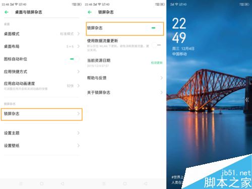 1、通过手机【设置】—【桌面与锁屏杂志】—【锁屏杂志】,打开开关。