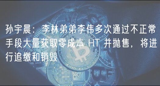 孙宇晨:李林弟弟李伟多次通过不正常手段大量获取零成本 HT 并抛售,将进行追缴和销毁