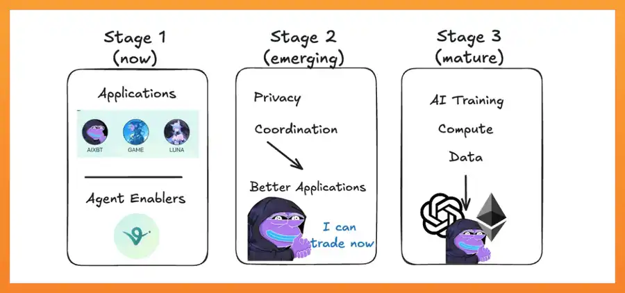 编者按:本文探讨了 agent 经济的未来发展,尤其是 AI agent 的演变。从阶段 1 的简单聊天机器人,到阶段 2 的隐私和 DeFi 结合,再到阶段 3 的 agent 之间的协作,强调了基础设施、框架和技术的关键作用。尽管当前市场充斥着简单的社交媒体 agent,真正的机会在于为自主经济活动提供支持的技术和平台。