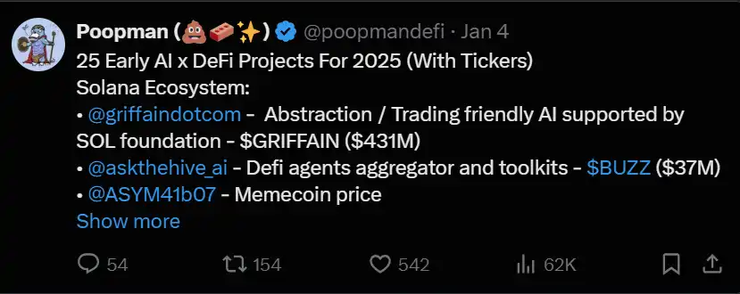 关键是这些 agent 现在需要在「技术」而非「文化」上进行竞争,这与阶段 1 有所不同。因此,你会看到像$BUZZ 或$ACOLYT 这样的**被炒作,因为背后有一个合法的 AI 团队或开发者支持(尽管他们与 Web2 的 AI 专家相比可能还差得远)。