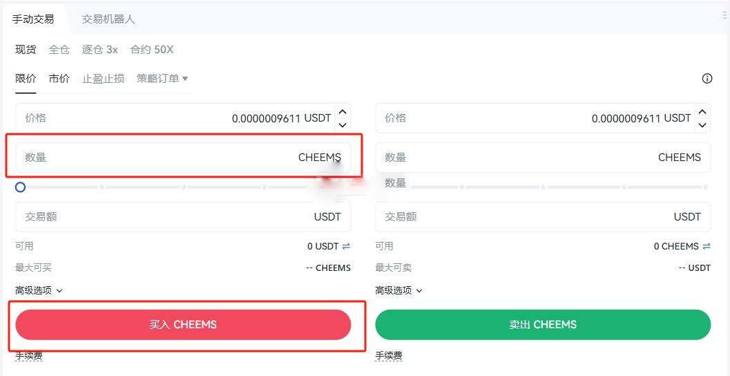 7、输入买入CHEEMS币的数量,点击买入CHEEMS币,就完成购买操作