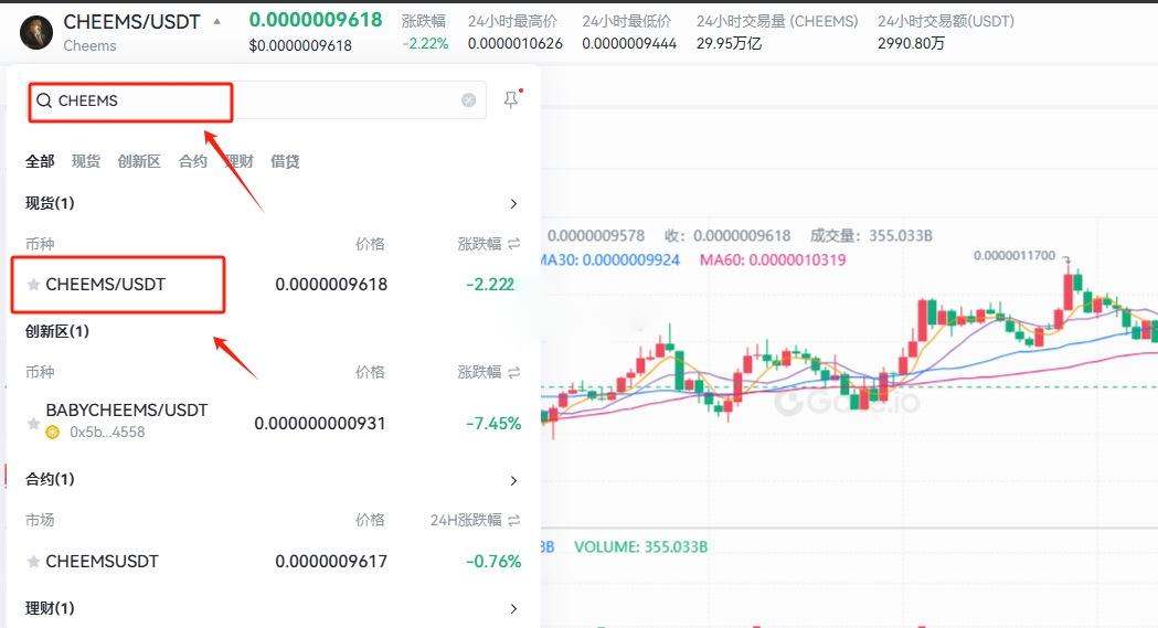 购买CHEEMS币可以在上线的Gate.io、Bitget、MEXC等等交易所内进行,下文是在Gate.io交易所购买CHEEMS币的具体教程讲解: