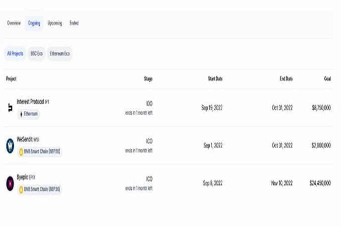 CoinMarketCap 的行事历还提供了有关最近完成 ICO 的项目之讯息。这些平台也被认为是新的加密货币发布。