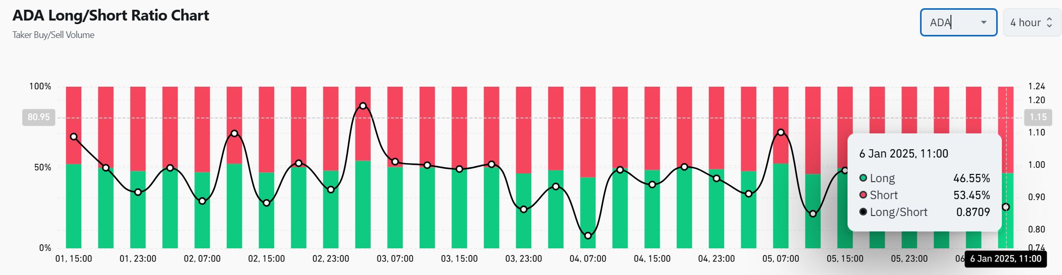 这种看涨形态通常先于价格上涨,而 ADA 目前正在测试 1.08 美元至 1.10 美元之间的关键供应区域。然而,这个区域可能在短期内成为阻力位。