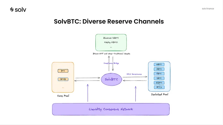 SolvBTC 充当代表所质押比特币的储备**,由比特币1:1 支援。用户可以在以太坊、BNB Chain 和Solana等区块链网路上自由移动SolvBTC,确保互通性和流动性。 SolvBTC 充当桥梁,使比特币成为DeFi 生态系统中的生产性资产。