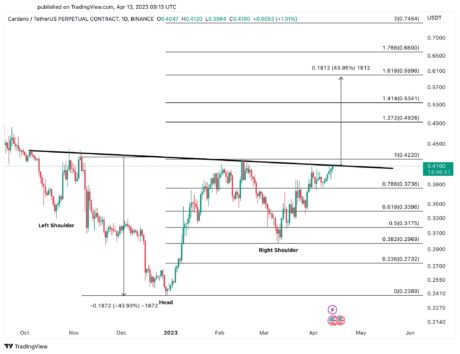 阿里用一张显示头肩形态的卡尔达诺价格图表来支持他的预测。据分析师称,一旦 Cardano 达到这种模式,它可能会导致 ADA 价格飙升 44%。