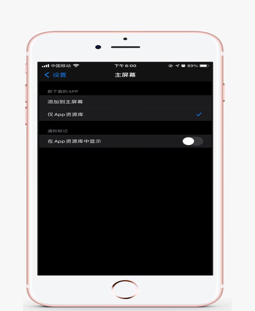 若勾选了「仅 App 资源库」选项,新安装的 App 将不会放置在主屏幕。