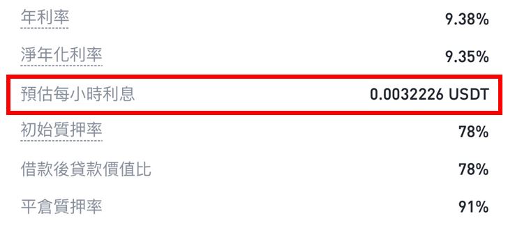 币安质押借币在操作借款的时候,系统就会直接帮你算出每小时的利息该缴多少钱。