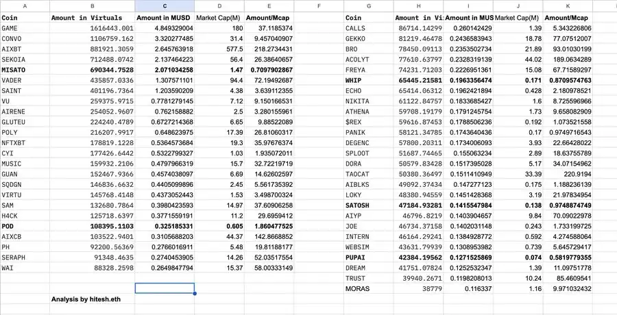 不过,这确实会带来间接的抛售压力,由于流动性池中的$VIRTUAL 数量增加,**的价值会因此提升,持有者可能会因此抛售更多$VIRTUAL。但由于流动性池的特性以及价格影响,并且许多这些**的流动性本很低,他们不可能直接抛售完所有**。