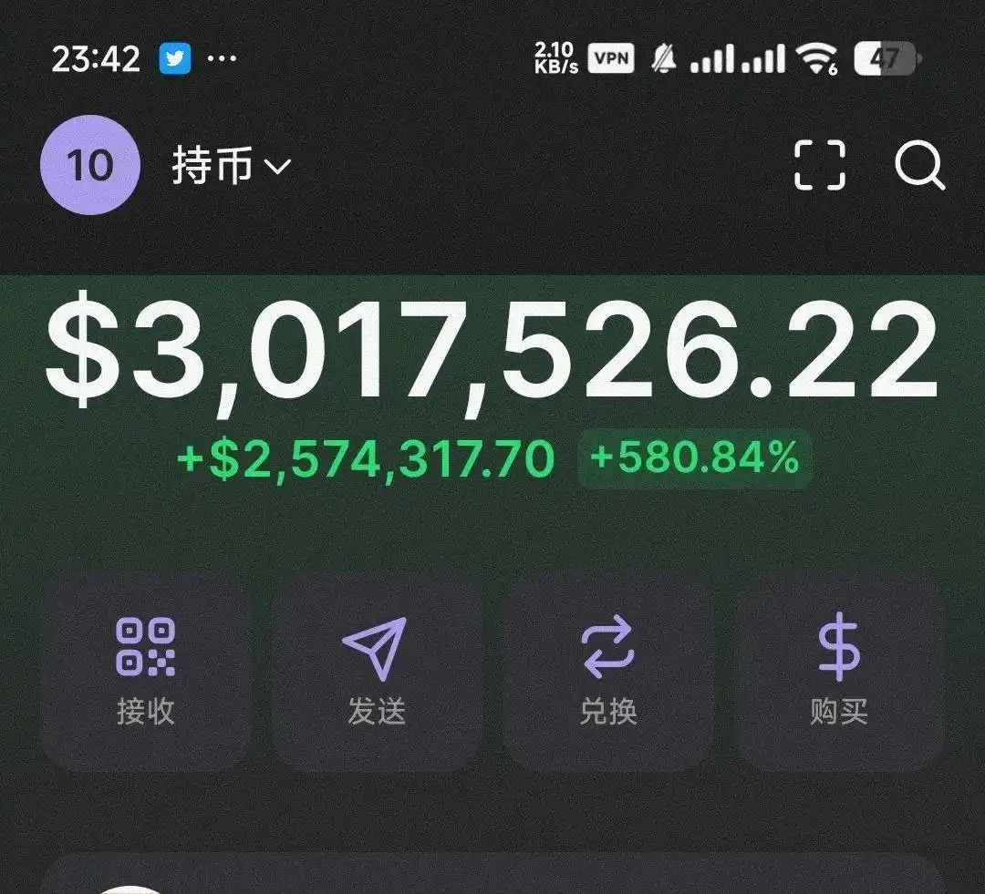 作为嗅觉敏锐的 Alpha 交易员、加密 KOL,愉悦 yuyue_chris 在今天的「TRUMP 大战」中也战绩亮眼,在不到 10 点 30 分的时候就果断下手,买入近 16 万美元的**,当时 TRUMP 市值仅为 10 亿美元左右。据其本人下午 3 点左右的推文显示,其盈利超 110 万美元,获利倍数超 7 倍,彼时 TRUMP 市值约为 140 亿美元左右;按照目前 TRUMP 的 280 亿市值计算,其盈利预估已超 200 万美元。