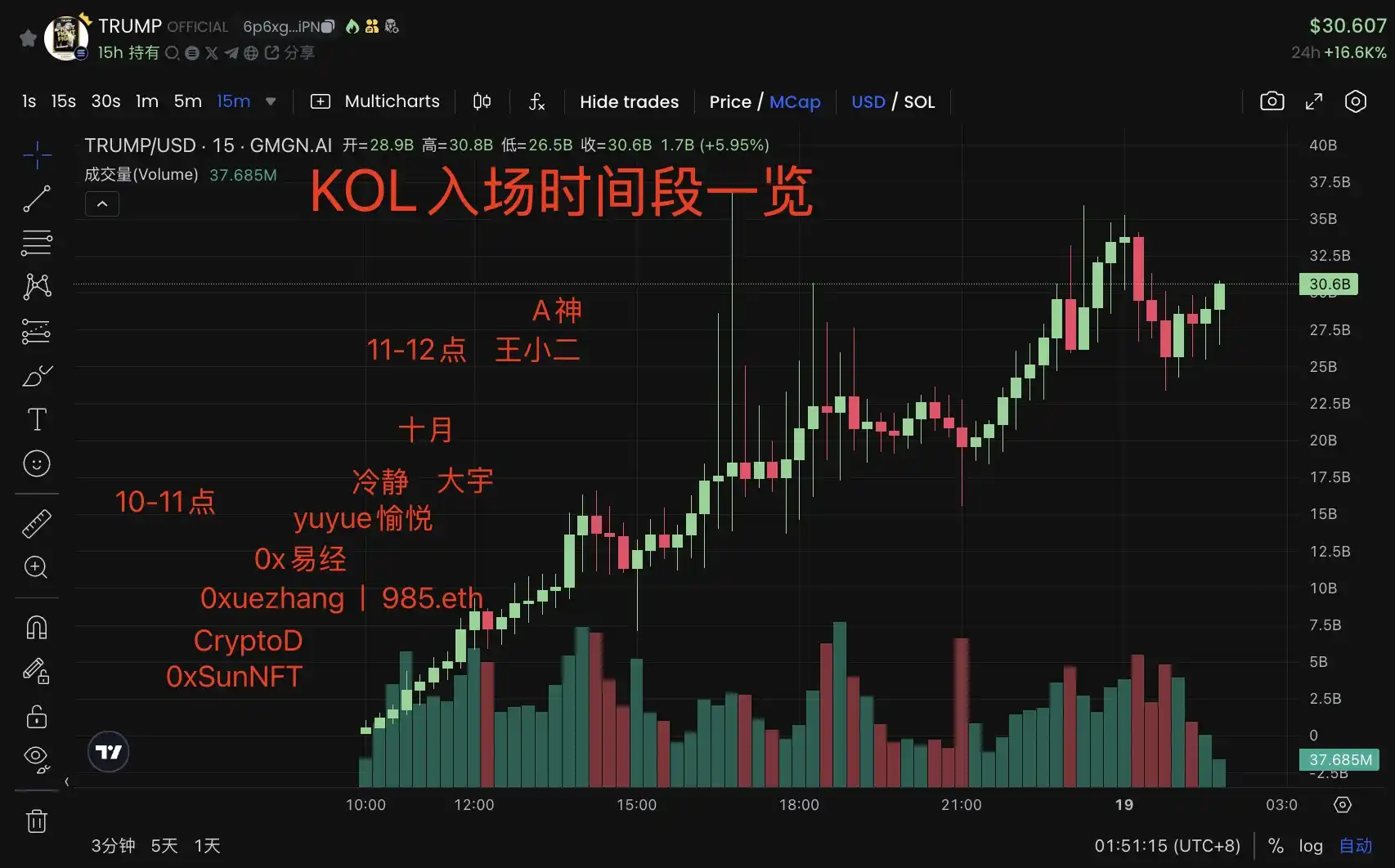 Odaily 星球日报注:受限于时间及多钱包地址等因素,以上数据统计仅作参考。另附不同 KOL 入场时间图概览——