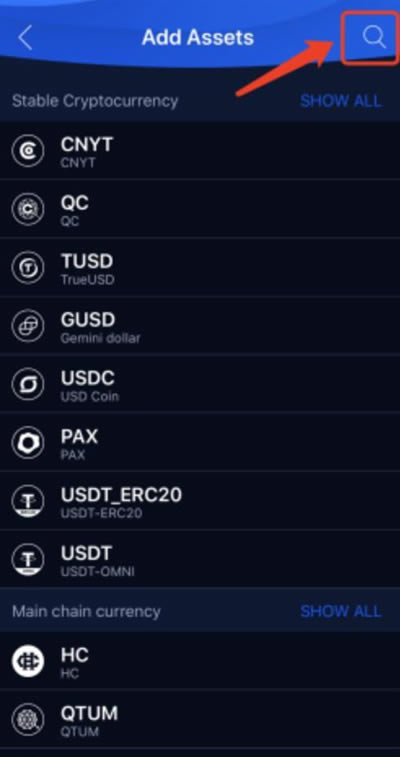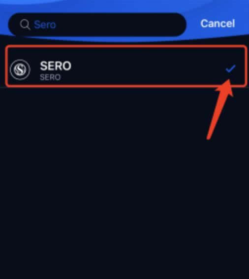 2.在搜索框中输入SERO,点击“SERO”进行添加。当出现“√”时,您添加资产成功。请注意,Android版本有一个“添加”按钮。