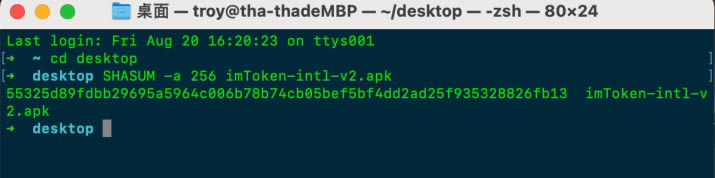 通过校对应用安装包的 SHA256 值和 imToken 官方提供的 SHA256 值,我们可以辨别安装包是否为正版。