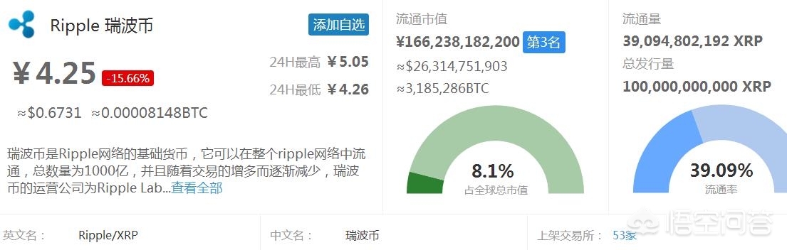 如果你了解到瑞波币的数量,就不会提出这样的问题。瑞波币的发行量是1000亿,而比特币只有2100万,超过了4760倍。今天瑞波币的价格是4.25元,折算成比特币的数量那么4.25*4760=20230元,如果涨到100元,那就是100*4760=476000元,47万元一个,你认为可能吗?