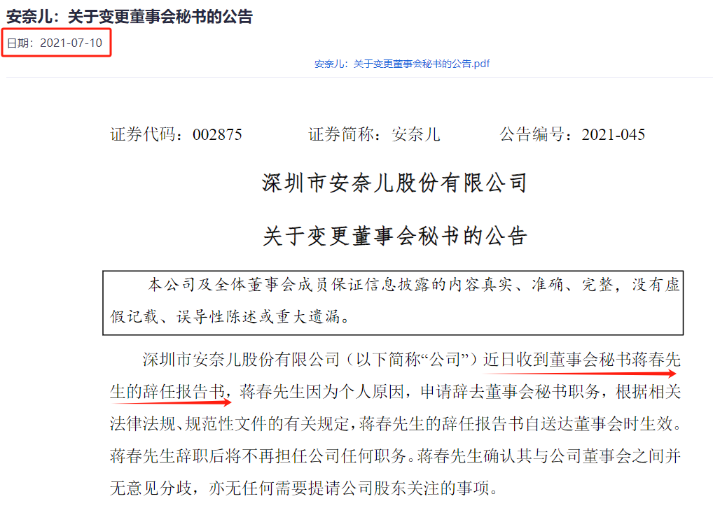 图片来源:《安奈儿:关于变更董事会秘书的公告》