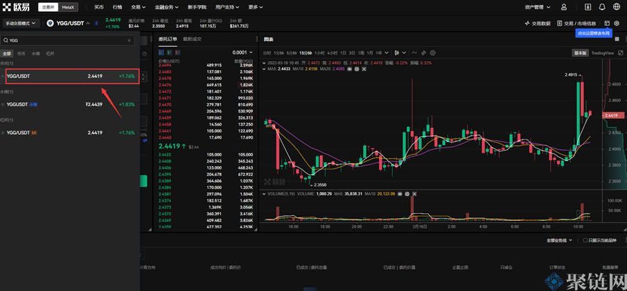 2、在交易对中输入YGG,就会出现欧意交易所支持的相关交易对