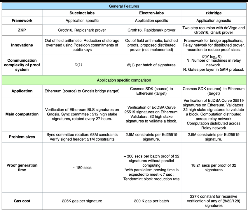 通过生成零知识证明,可以用来解决上述的以太坊上验证 Ed25519 等签名成本困难的问题。例如 Electron Labs 通过实现 ZK SNARKs 的证明来校验基于 Tendermint 链的签名合法性 [6],以此来避免在智能合约里的来执行签名相关的高成本计算。