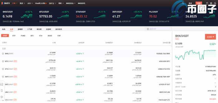 **步:登陆币客官网(https://www.bkex.com/),进入行情页面