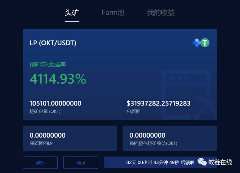 1.目前已经有部分交易平台开始在其公链上投放项目,但在暴****的风险,而OKExChain上的早期项目还处于测试阶段,用户拿0成本获取的测试币即可开撸。