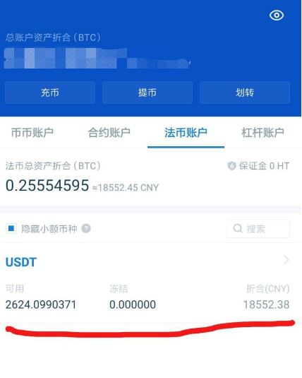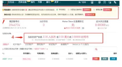 如果你的账户显示如图所示,说明【法币账户】里没有币,也就不能在法币交易区卖掉换**民币,那么就需要【划转】