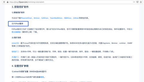 直接选取页面中的3. 获取挖矿软件 2) F2Pool版本 即可,F2Pool版本配置起来比较简单,也可以信任。