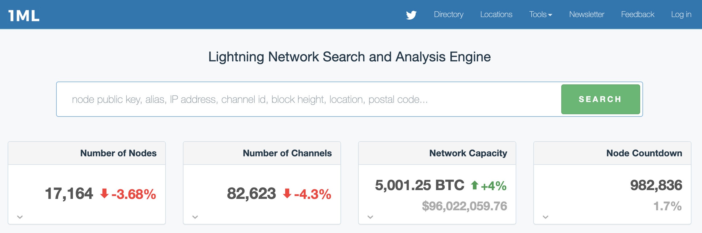 虽然增长较快,但目前闪电网络的整体容量与粉丝们对它的期望相比还是很不相符的。下面是1ml10月20日的数据。